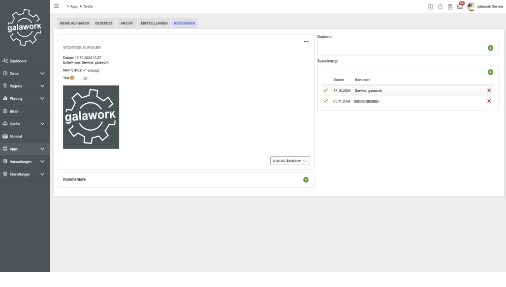 Erstellen Sie Aufgaben und versenden Sie diese ans den entsprechenden Empfängerkreis. Verfolgen Sie den Status und eine ggf. eine Änderung der Aufgabe nach. Haben Sie somit immer den aktuellen Stand auf einem Blick.